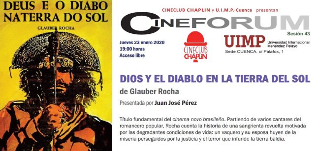 Sesión 43, 23 de enero de 2020 Esta tarde se celebrará una nueva sesión de Cineforum, en la sede de la UIMP, a las 19:00h, con entrada libre para cuantas personas deseen asistir. Juan José Pérez presenta «Dios y el diablo en la tierra del sol», de Glauber Rocha. A continuación se proyectará el film,…